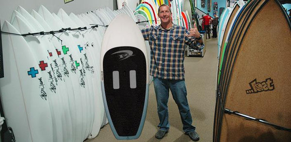 “All the current SUP boards were created for standing up the entire time. Once we found out that people were kneeling over 50% of the time, we knew we could shrink the length and reduce the volume to a whole new level. Think about Mike Stewart trying to bodyboard Pipeline on an 11’ board. No way, it would never happen. Once we realized that nobody was even standing up anyway, we knew it was game on!” – Bill “Stretch” Riedel : Designer/Shaper Stretch Surfboards