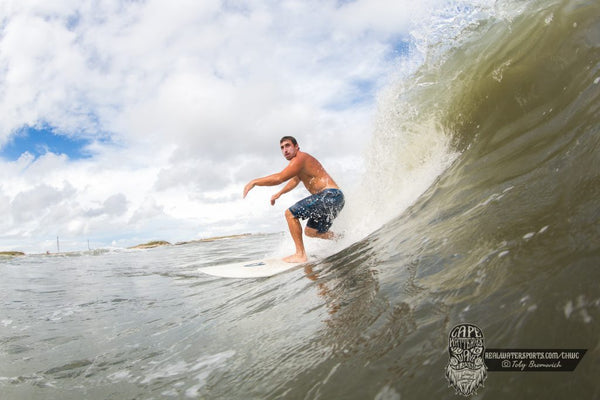 Day Three of the Cape Hatteras Wave Classic presented by Patagonia started with winds strong enough to run heats through round 2. We had a change in weather mid morning. A rain storm shifted our strong cross onshore breeze, to a light offshore. Competitors, spectators, and event staff all ran to the water to partake in surf sessions throughout the day. Short boards, long boards, fishes, even inflatable couches were in the line up. Everyone was stoked to get together and enjoy a classic North Carolina beach day.