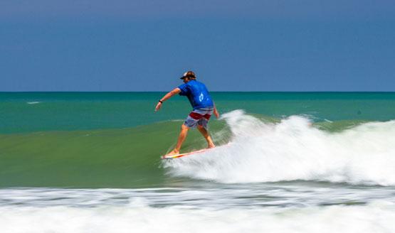 The design focus of a noserider longboard is to keep the board in the pocket of the wave and to allow the surfer to surf small crumbly waves (often dribblers) while still feeling the “glide” of the board across the top of the water. “Glide” is the ability of the board to displace water at speed and not be so dependent on planning above the water like narrower high performance longboards or shortboards. More volume and often a flat or slightly convex (bellied) bottom make this type of board work well both gliding and planning. These boards also encourage “cross stepping” to the nose and are great “dance platforms” for walking to and from the nose during each ride.